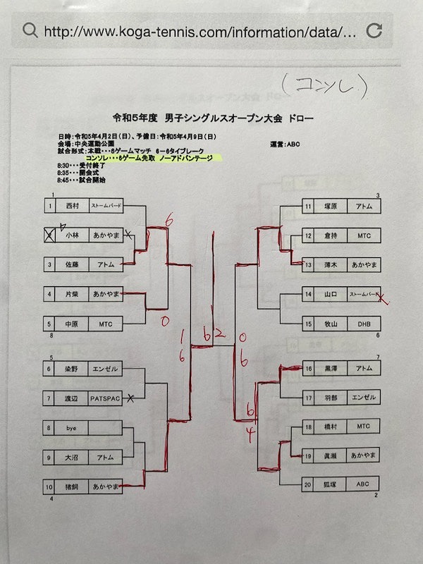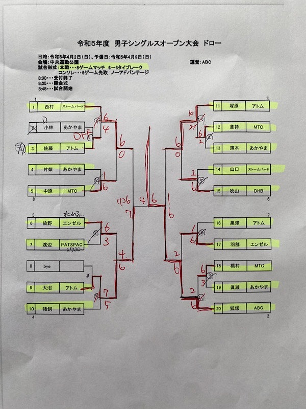令和5年度男子シングルスオープン大会結果