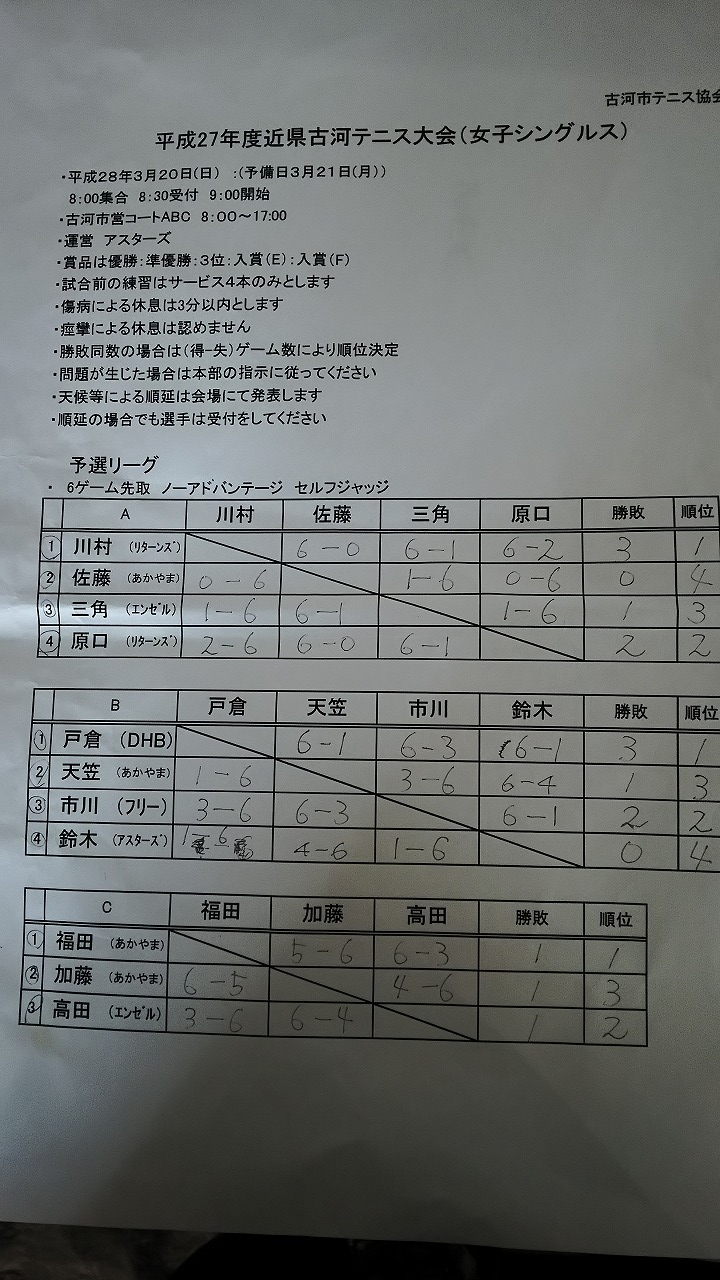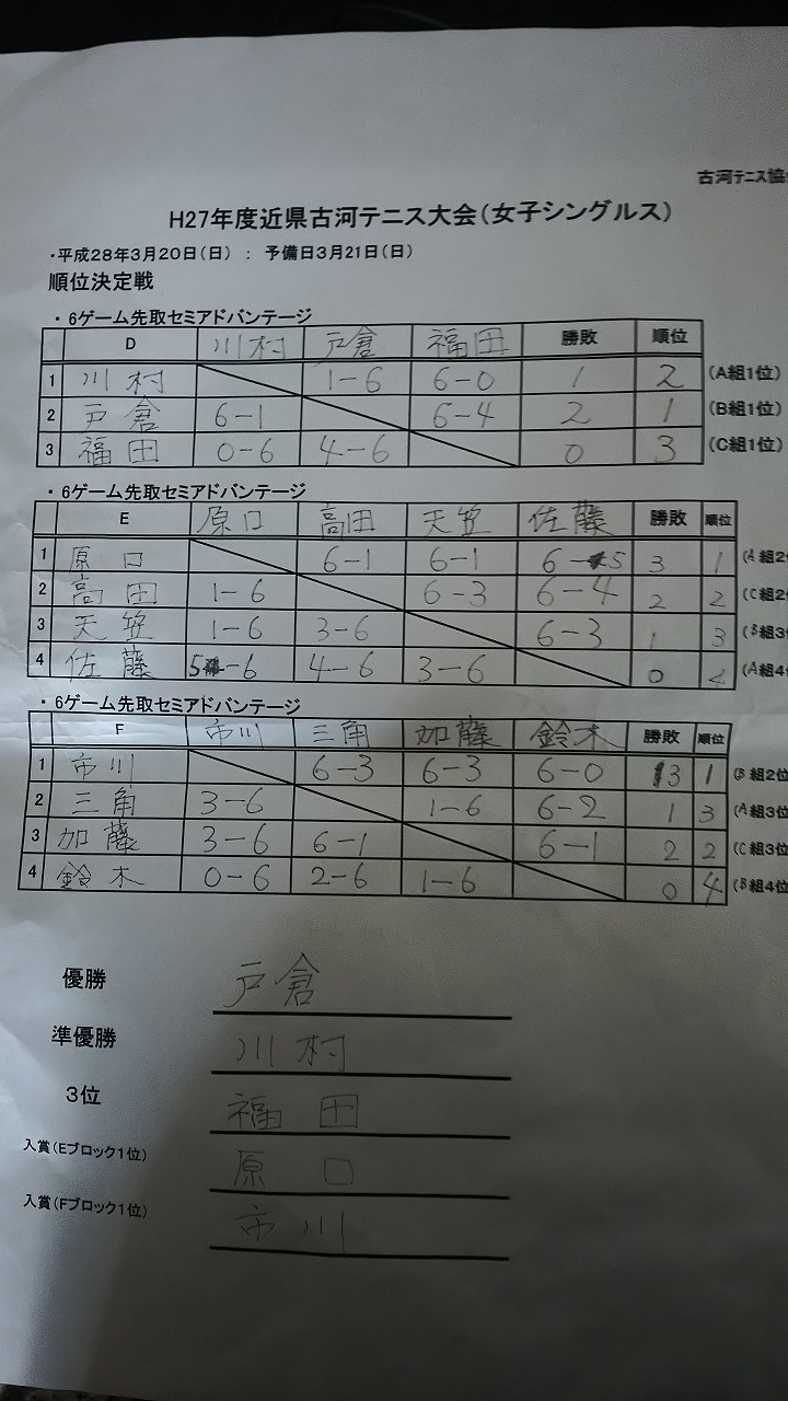 H27年度 近県古河テニス大会 女子シングルス 結果
